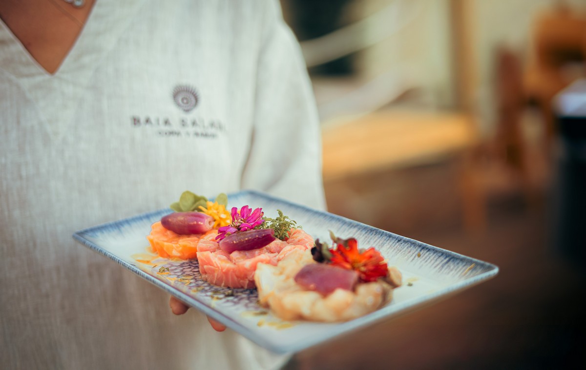 Baia Salada, infatti, non è un locale tradizionale. La sua forza è nell'atmosfera, nel contesto suggestivo e in una proposta gastronomica pensata per accompagnare momenti di relax: aperitivi, apericena e dopocena, con un'accurata selezione di vini, drink e birre artigianali e pochi piatti centrali, curati nei dettagli, da condividere.