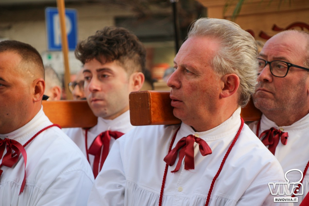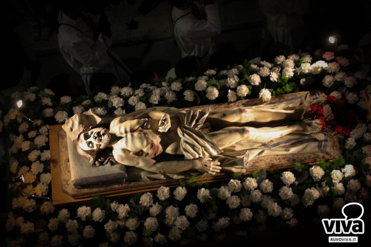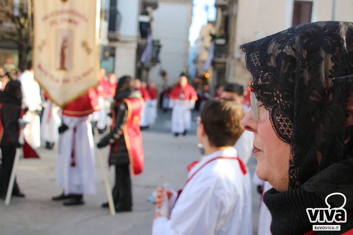 La processione, prevista nel pomeriggio del Venerdì Santo, ha preso il via intorno alle ore 17:30 dalla Chiesa del Carmine, e si è snodata in un suggestivo corteo attraverso vie e piazze del centro, accompagnata da marce funebri e dal silenzioso rispetto dei fedeli.