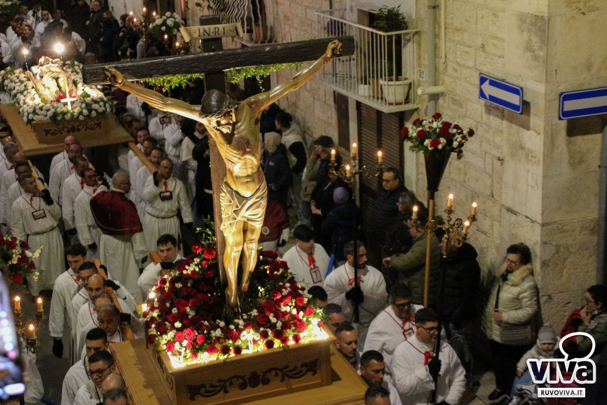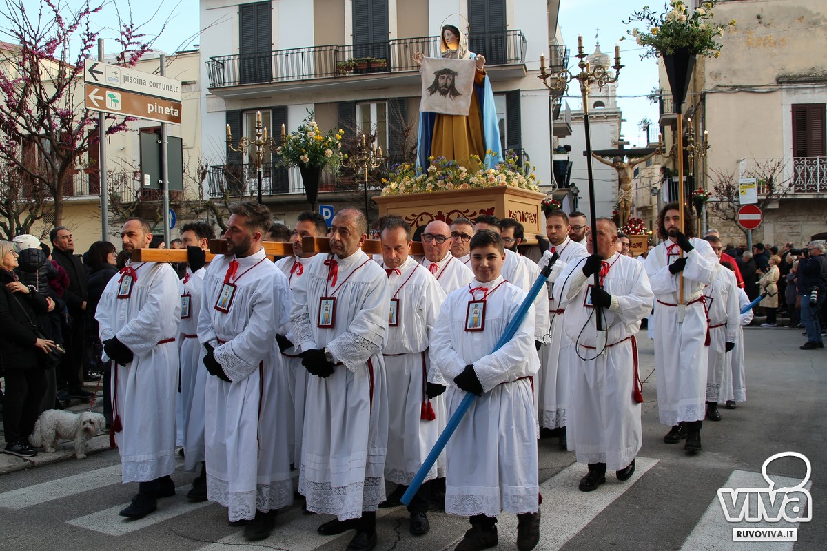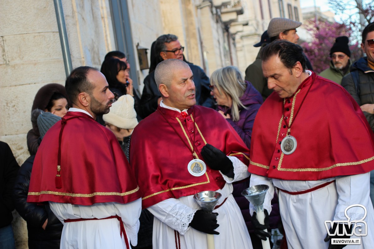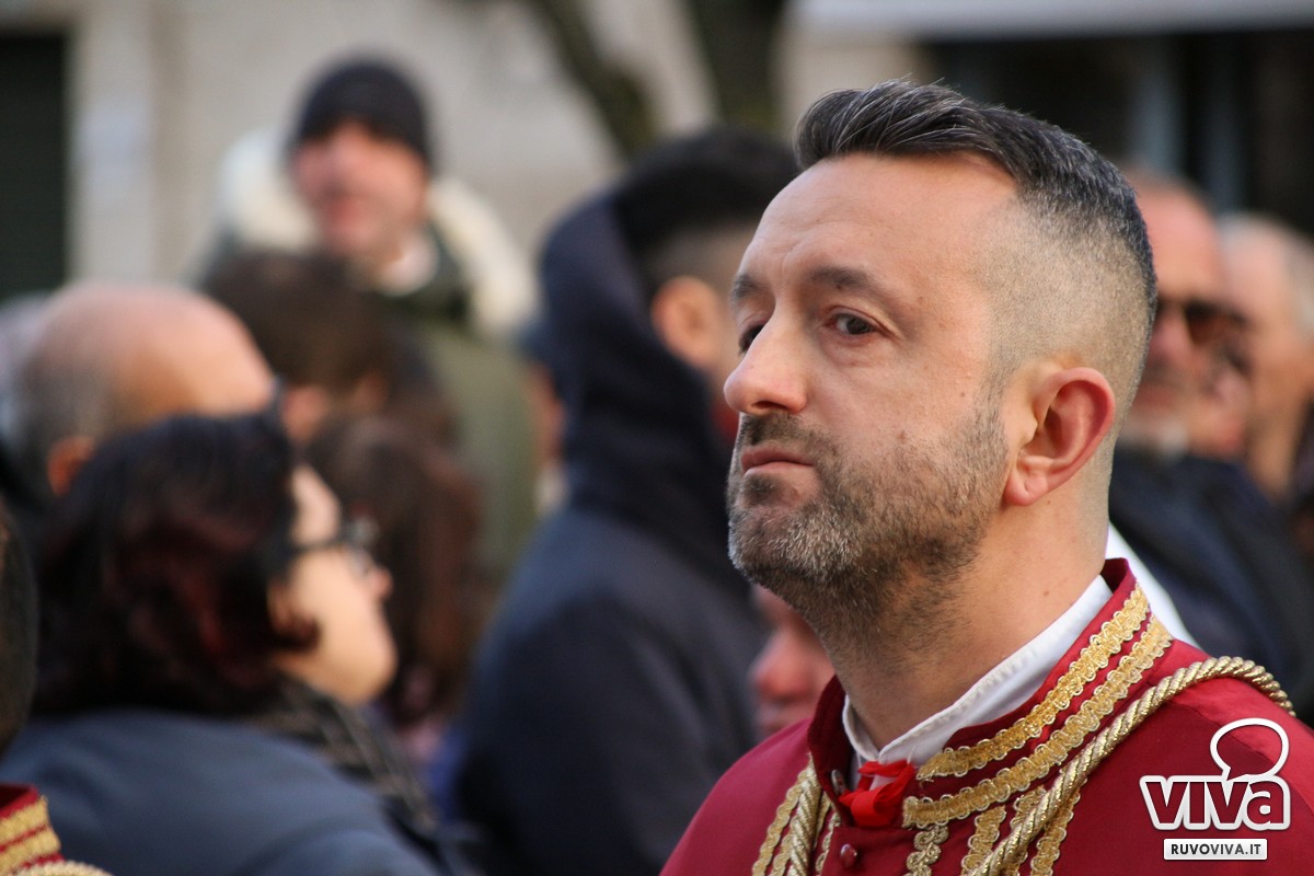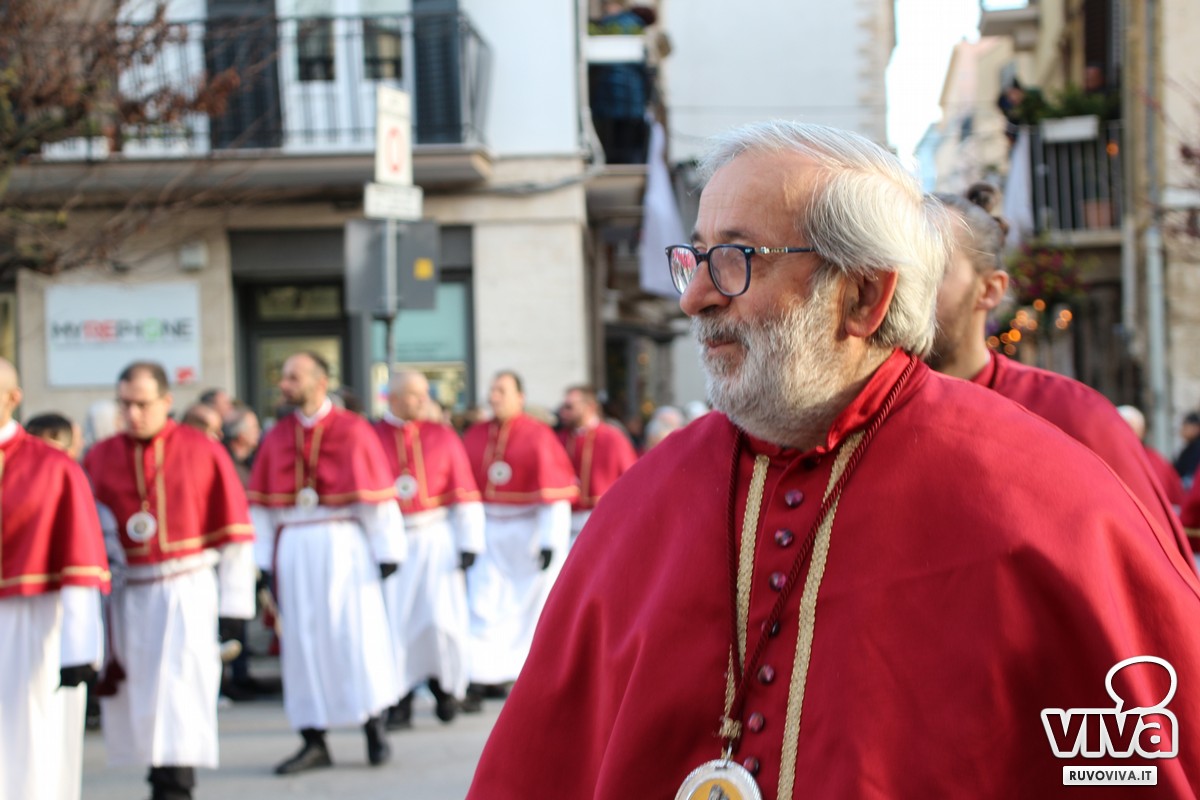 Ieri pomeriggio, nel cuore della Settimana Santa di Ruvo di Puglia, si è svolta la solenne Processione dei Misteri, un rito antico e sentito che rinnova ogni anno la memoria della Passione di Cristo.