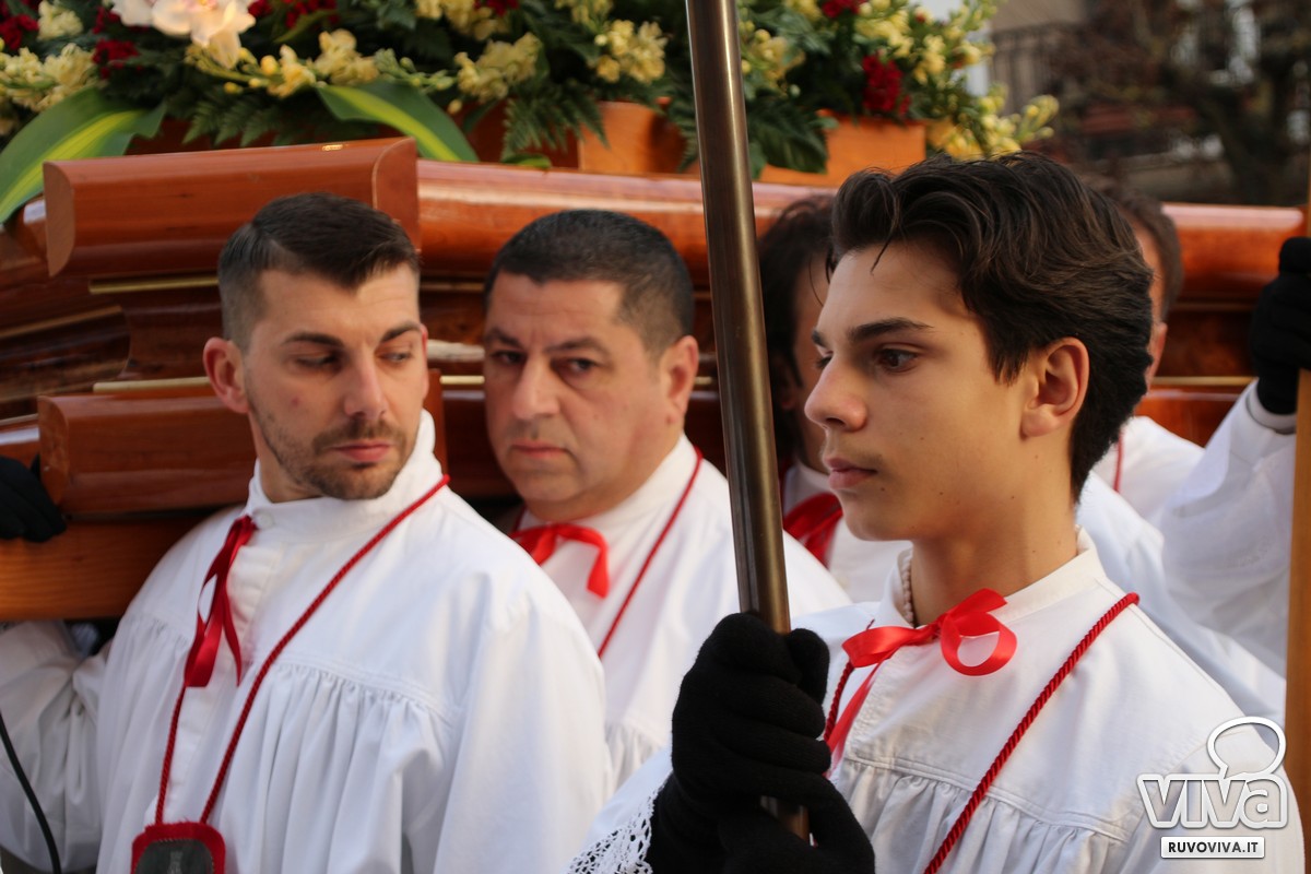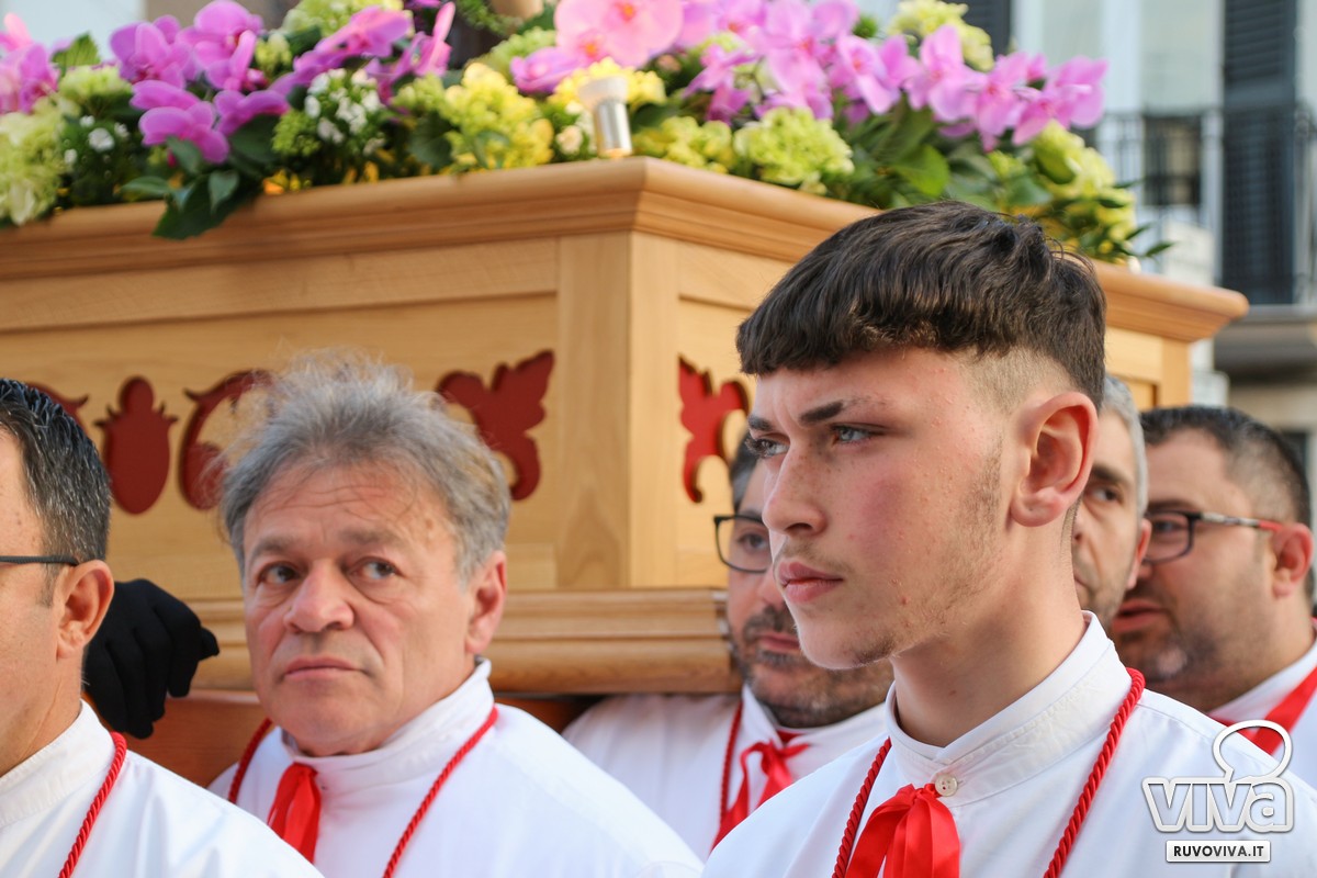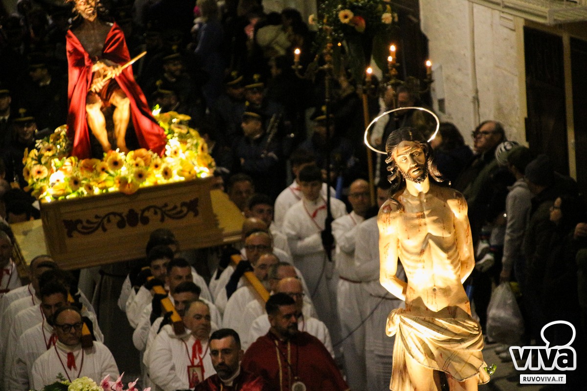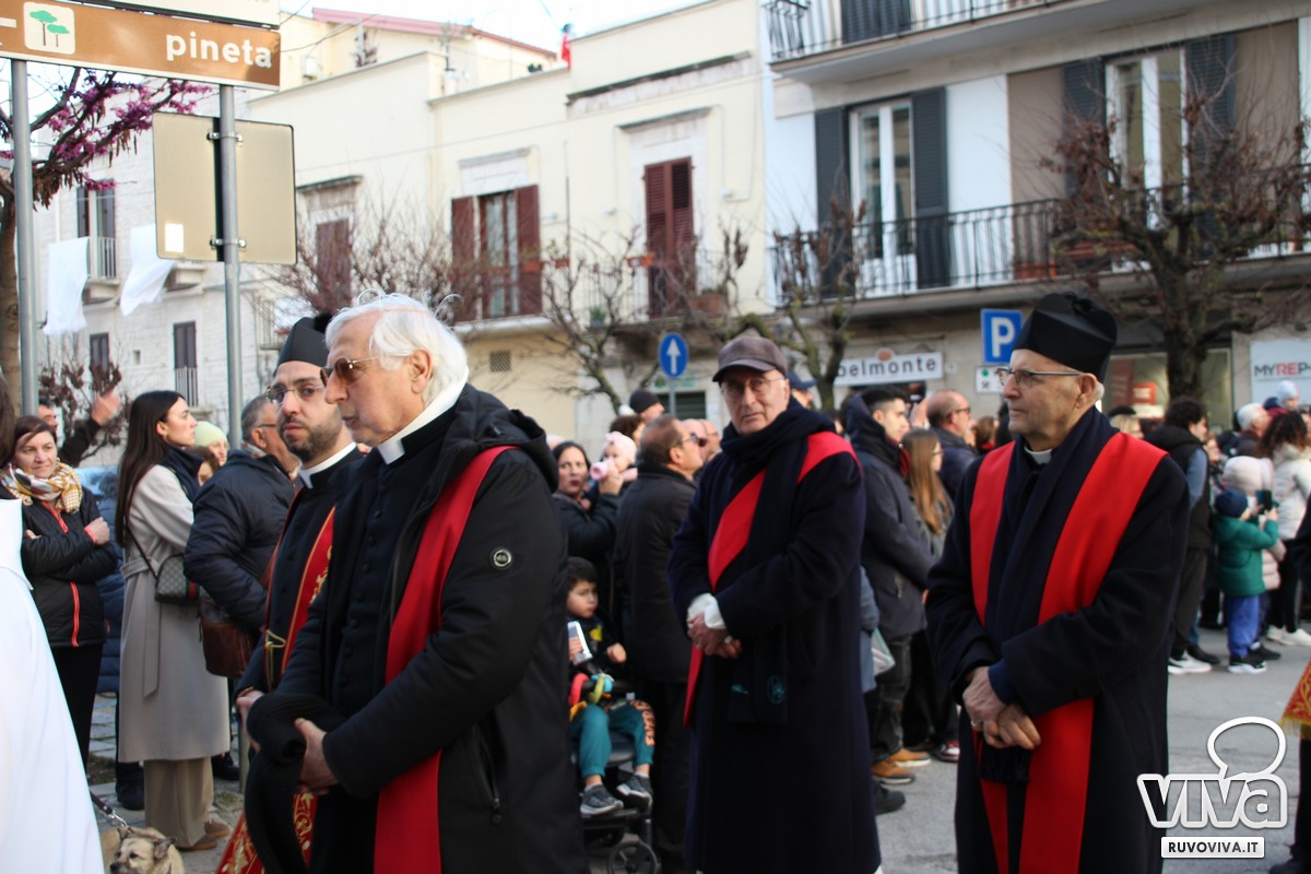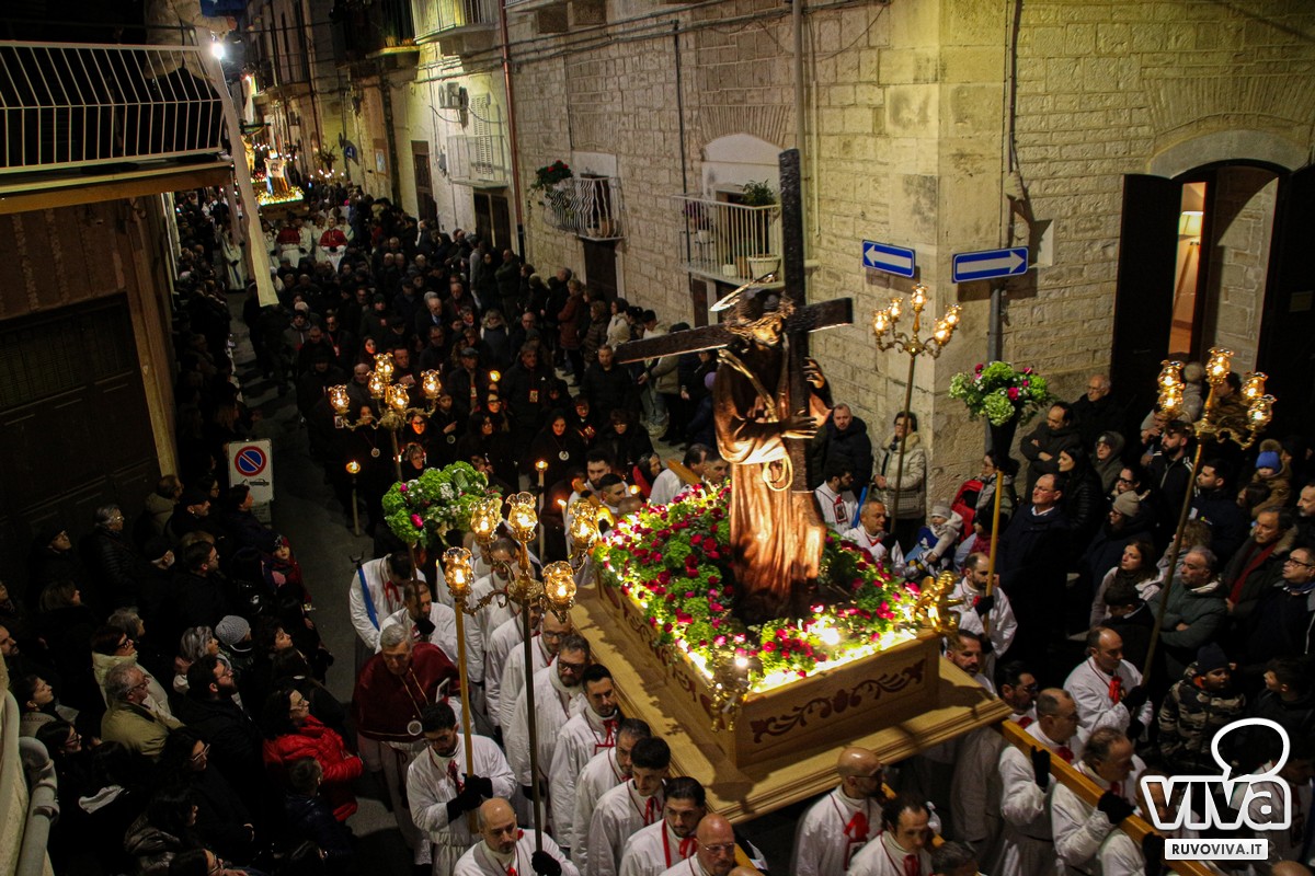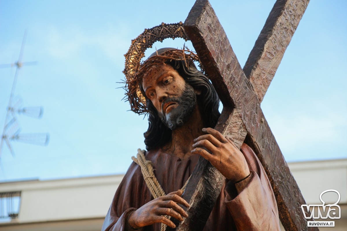 Ieri pomeriggio, nel cuore della Settimana Santa di Ruvo di Puglia, si è svolta la solenne Processione dei Misteri, un rito antico e sentito che rinnova ogni anno la memoria della Passione di Cristo.