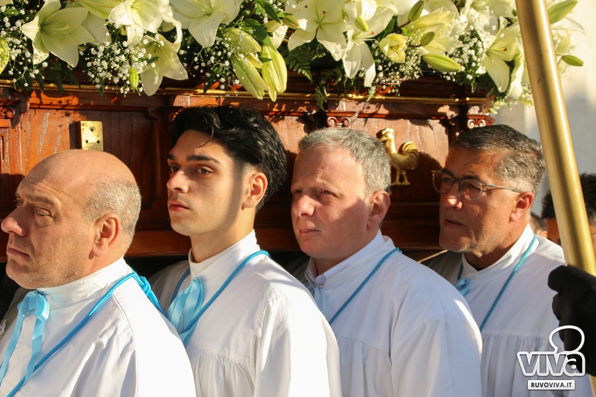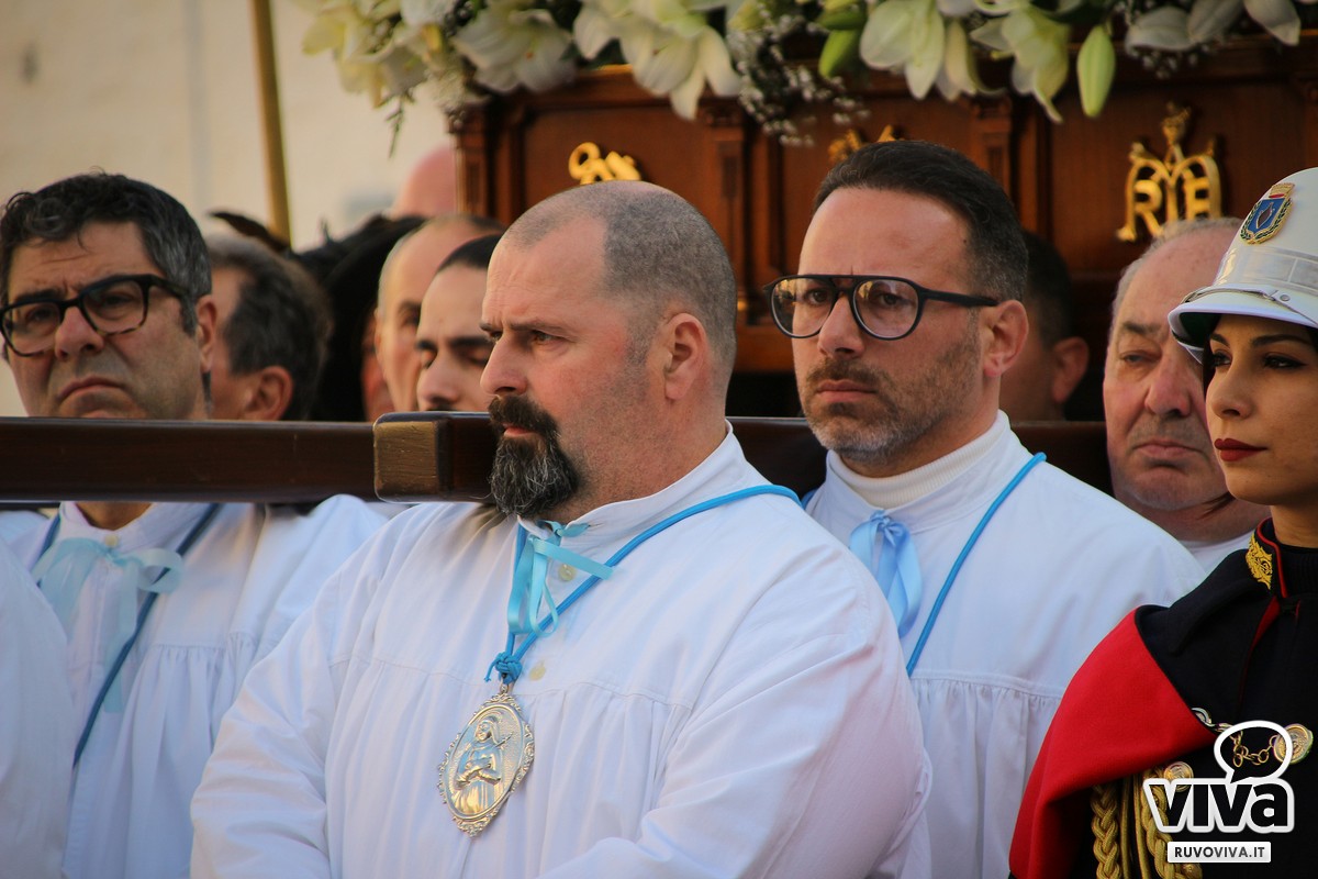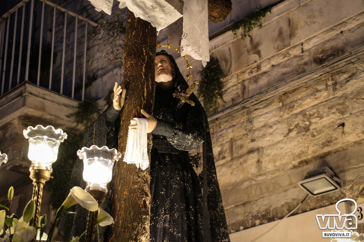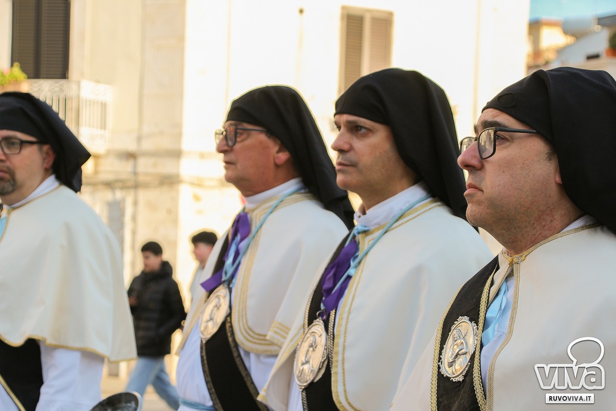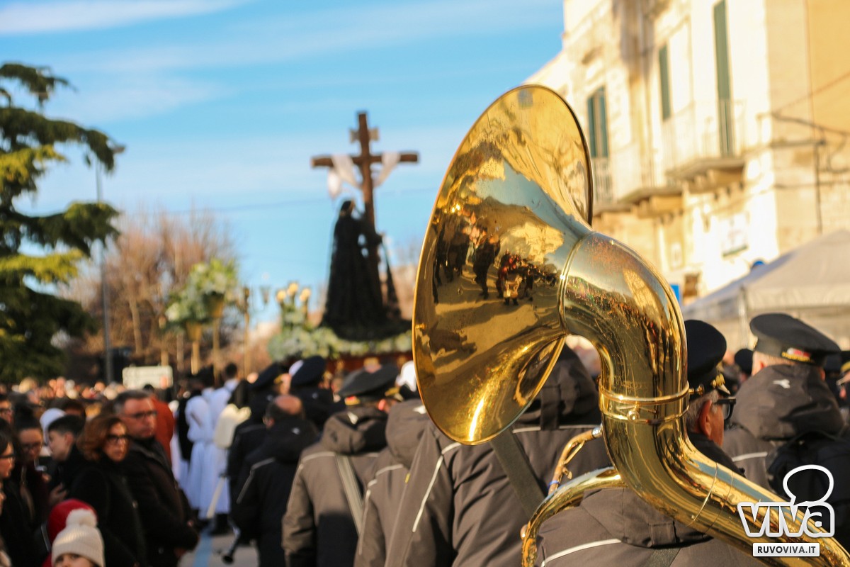 Conosciuta dai ruvesi come la processione della "Madonna del vento", la sacra immagine ha percorso le strade principali della città, accompagnata dal silenzio rispettoso dei fedeli. Al calar della sera, le luci urbane si sono spente, lasciando spazio a un'atmosfera sospesa e intensa; le fiammelle dei ceri illuminavano il cammino, mentre lenzuola bianche sventolavano dai balconi, richiamo alla sindone che avvolse il corpo di Cristo.