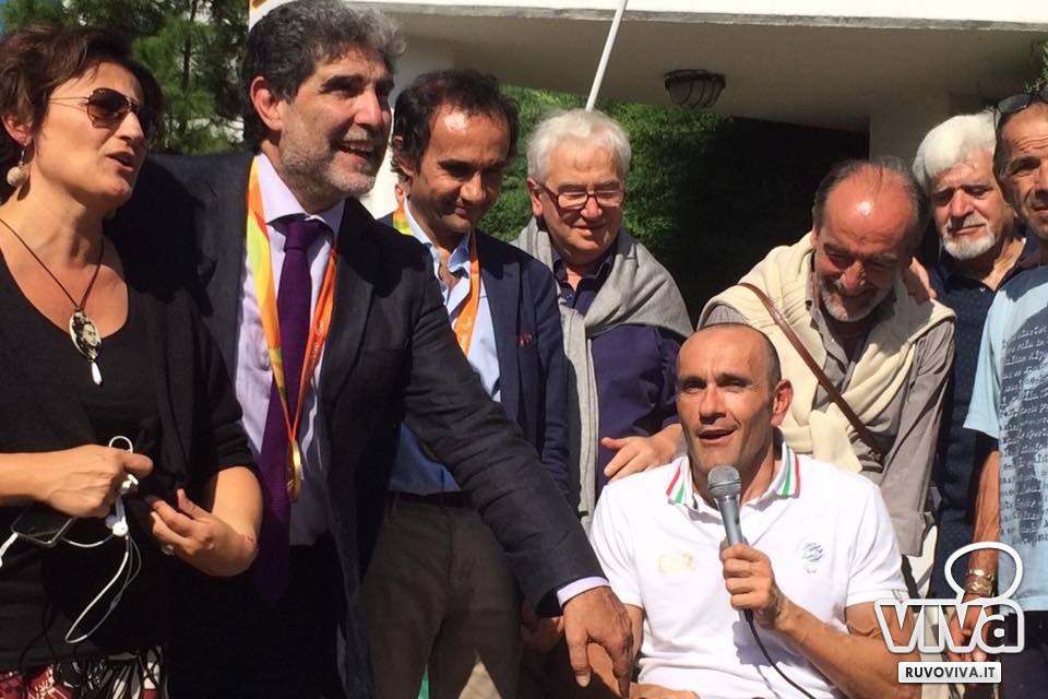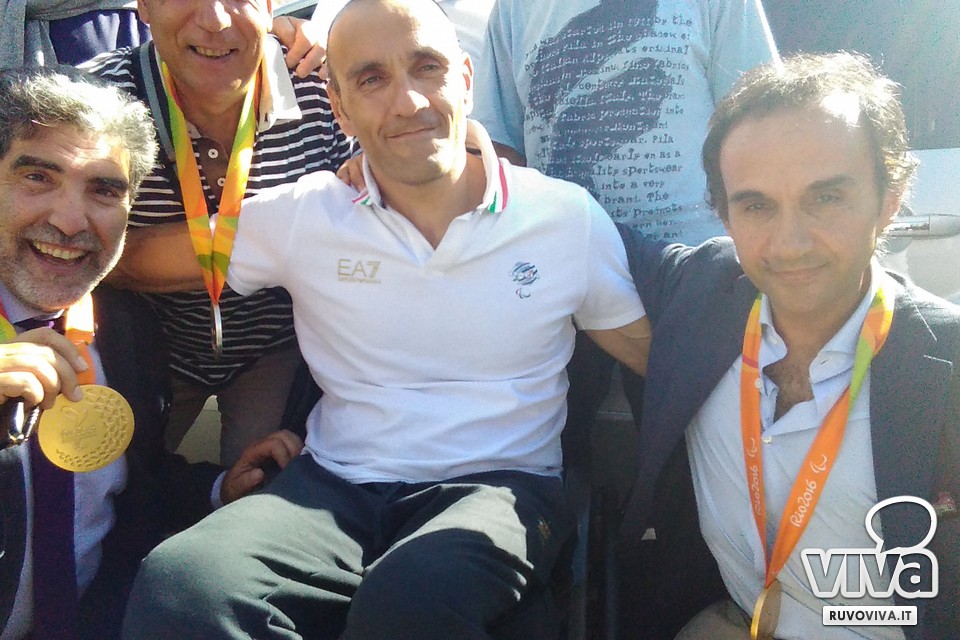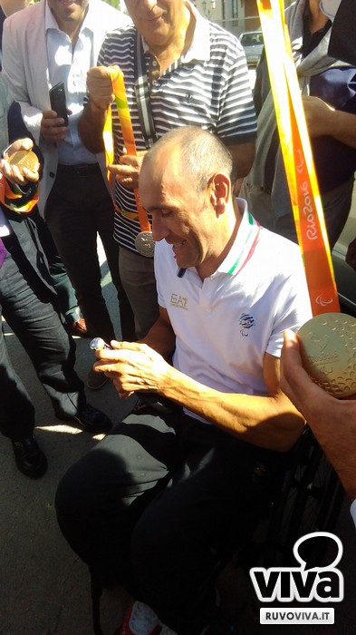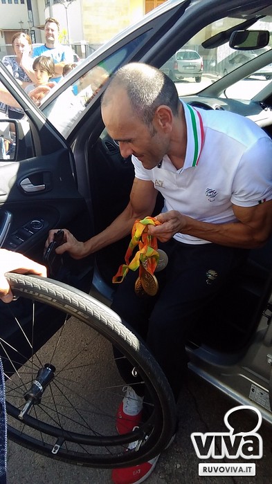 Terlizzi e Ruvo hanno abbracciato il campione Luca Mazzone. Appena arrivato in città, il due volte medaglia d'oro alle Paralimpiadi di Rio è stato accolto poco fa, al suo arrivo a Ruvo, dal sindaco Ninni Chieco e dal primo cittadino di Terlizzi Ninni Gemmato. Con loro anche amici e curiosi che hanno voluto salutare Mazzone. "Grazie a Luca due città si sono unite in questo bellissimo sogno reso possibile dalla determinazione e dal coraggio di un grande campione!" ha commentato Gemmato. Emozionato il sindaco di Ruvo, Chieco, che si è detto orgoglioso del suo concittadino; «Dacci l'autorizzazione a venderti. Logicamente a vendere la tua immagine, sei un esempio di vita e di sport per tutti noi». E poi foto, brindisi di rito, bandiere e un "giro" di medaglie d'oro. In attesa di un'altra festa con tutta la città.