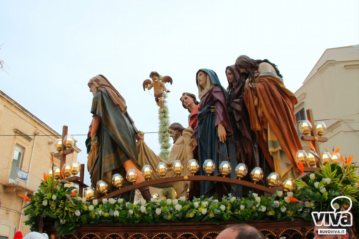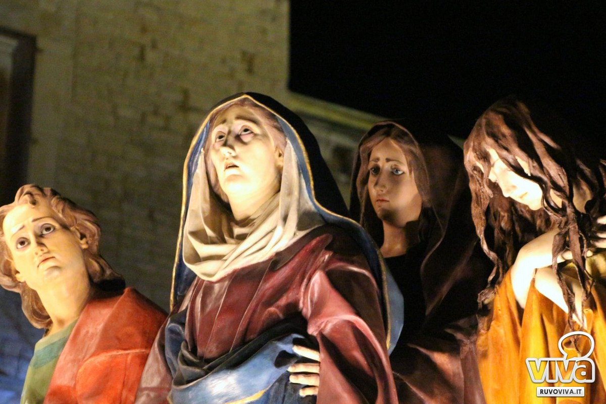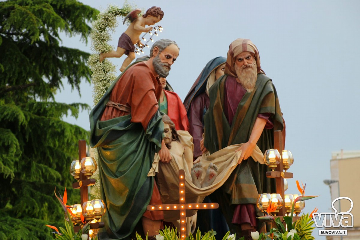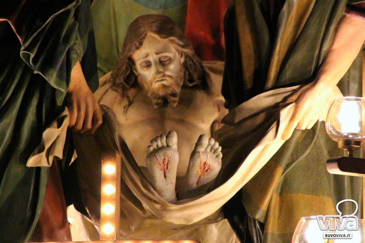 Alle 2:30, quando la città dorme e le strade sono appena illuminate dai lampioni, dalla chiesa di San Rocco si apre il portale del mistero. È l'uscita del gruppo statuario della Deposizione, momento culminante di una tradizione che unisce e commuove.