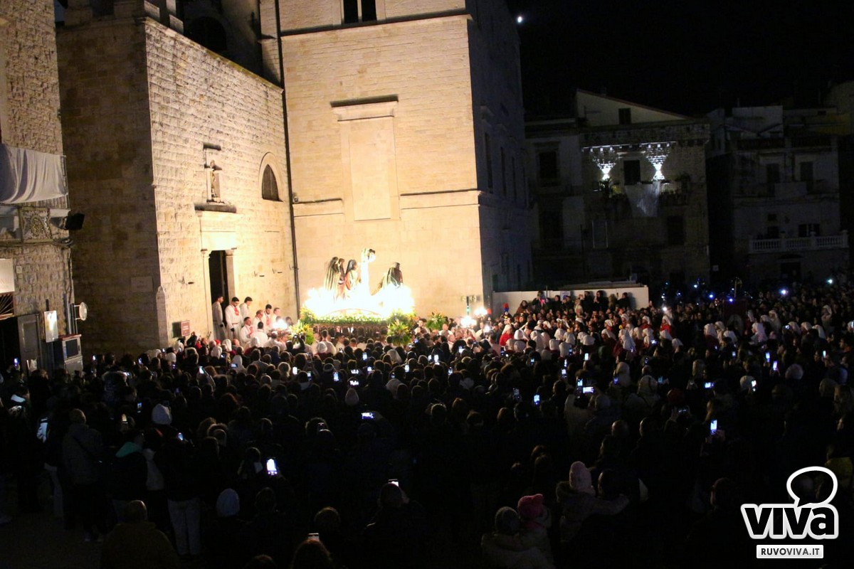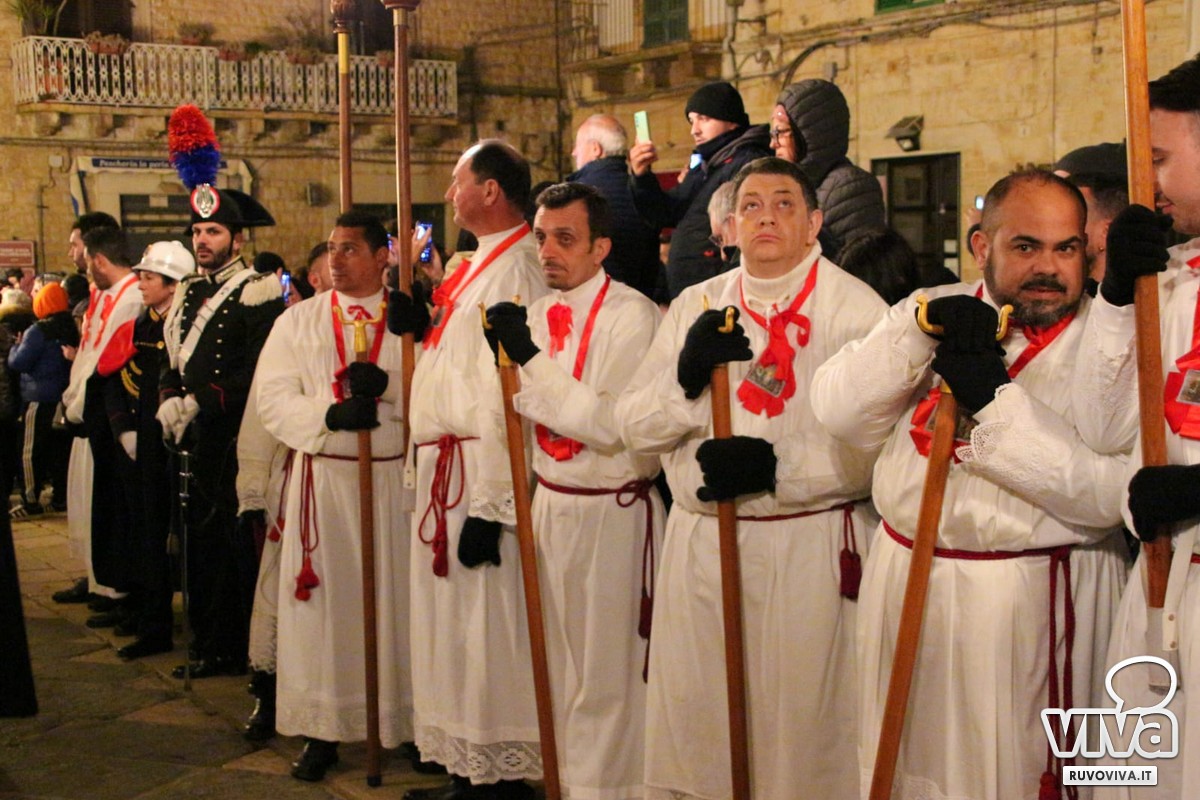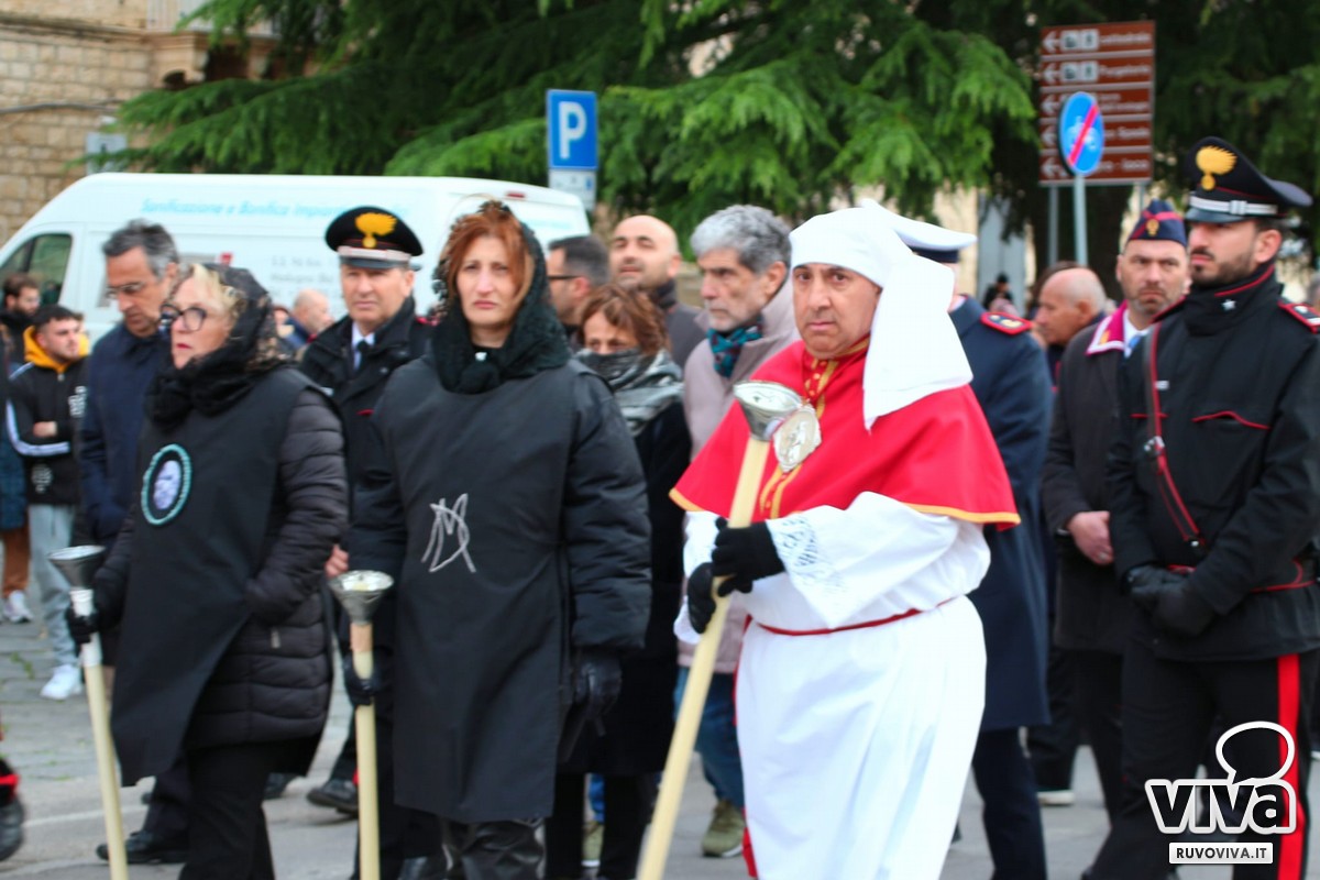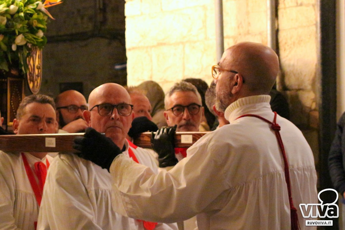 E staniotte, nonostante il vento che soffiava forte e la pioggia che ogni tanto graffiava le guance dei presenti, Ruvo c'era. In tanti, tantissimi, hanno accompagnato in silenzio e con rispetto questo rito antico, come se il maltempo potesse solo renderlo più vero, più intenso, più sacro.
