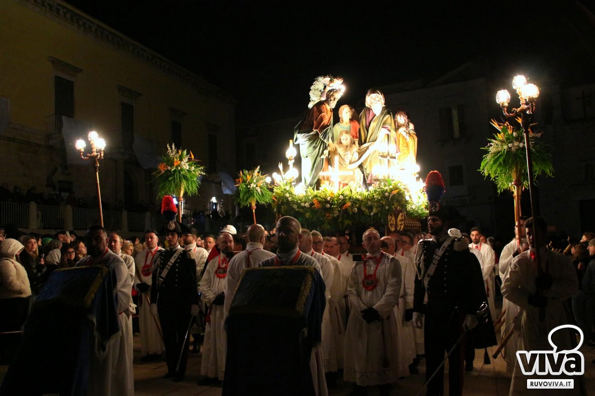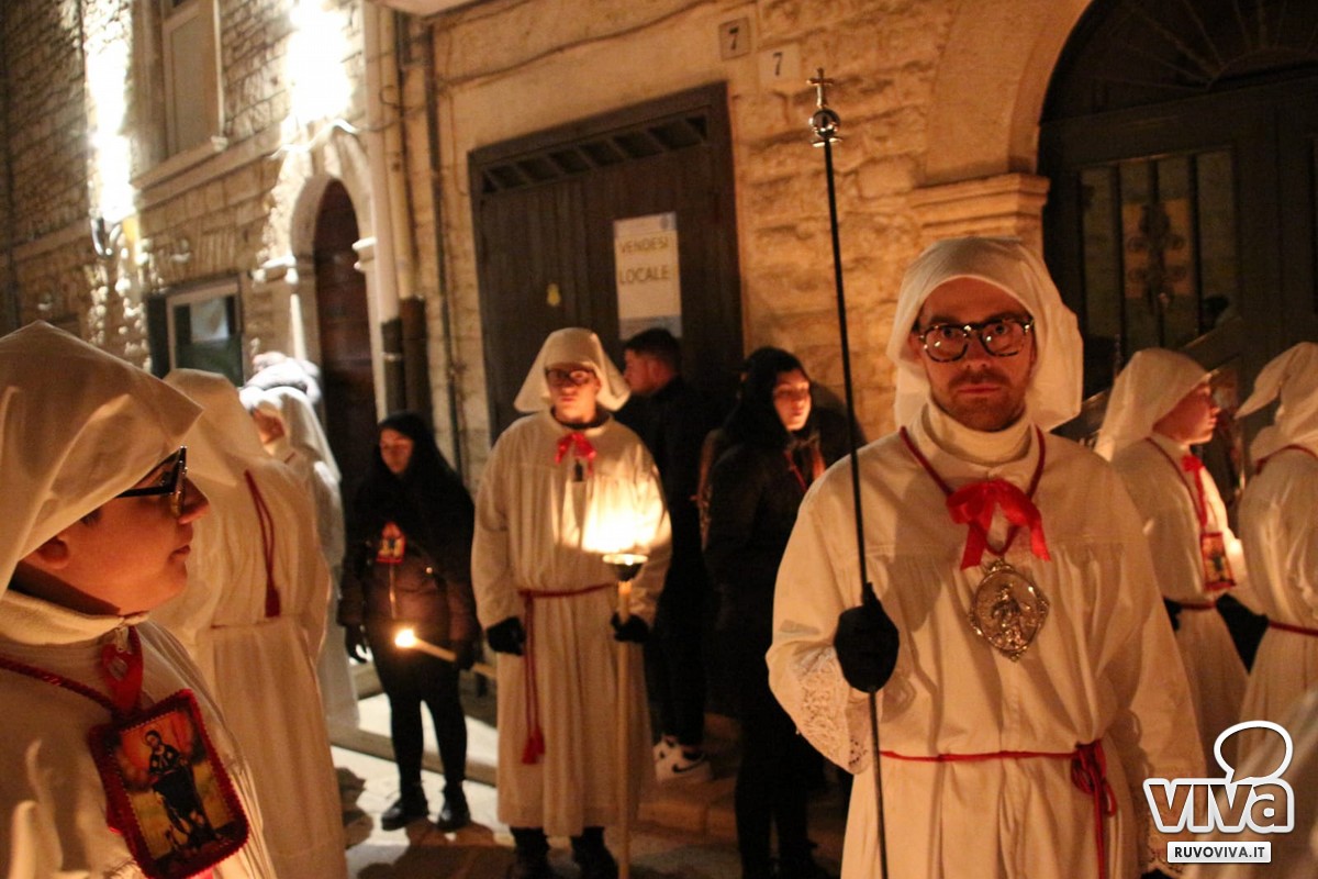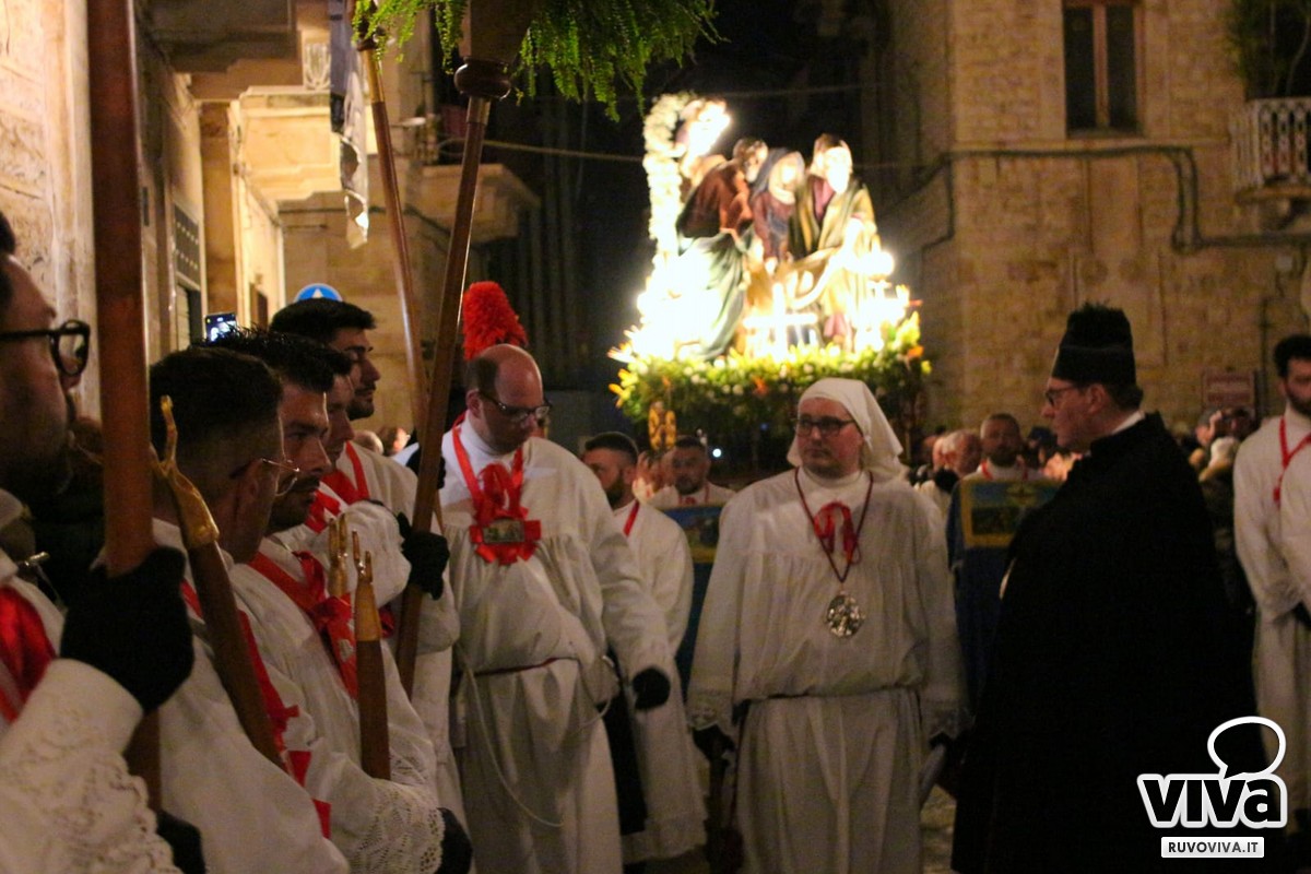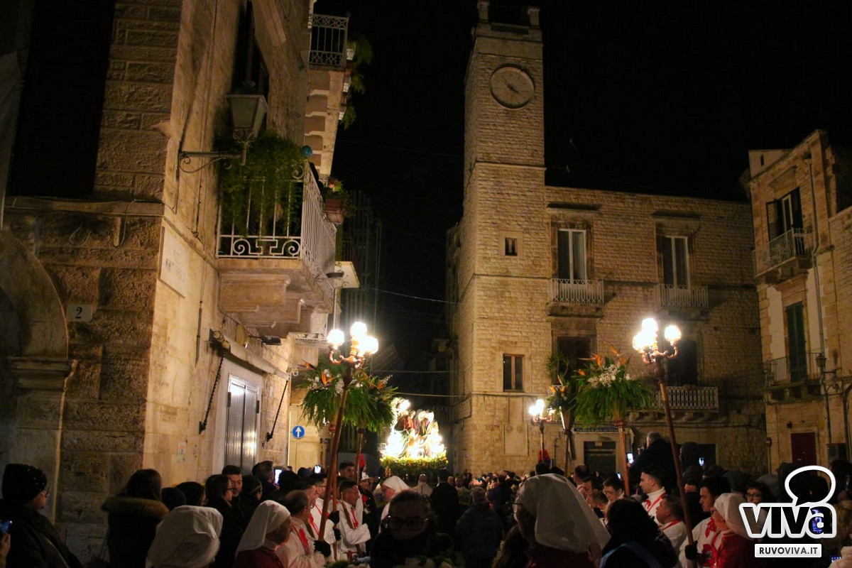E staniotte, nonostante il vento che soffiava forte e la pioggia che ogni tanto graffiava le guance dei presenti, Ruvo c'era. In tanti, tantissimi, hanno accompagnato in silenzio e con rispetto questo rito antico, come se il maltempo potesse solo renderlo più vero, più intenso, più sacro.