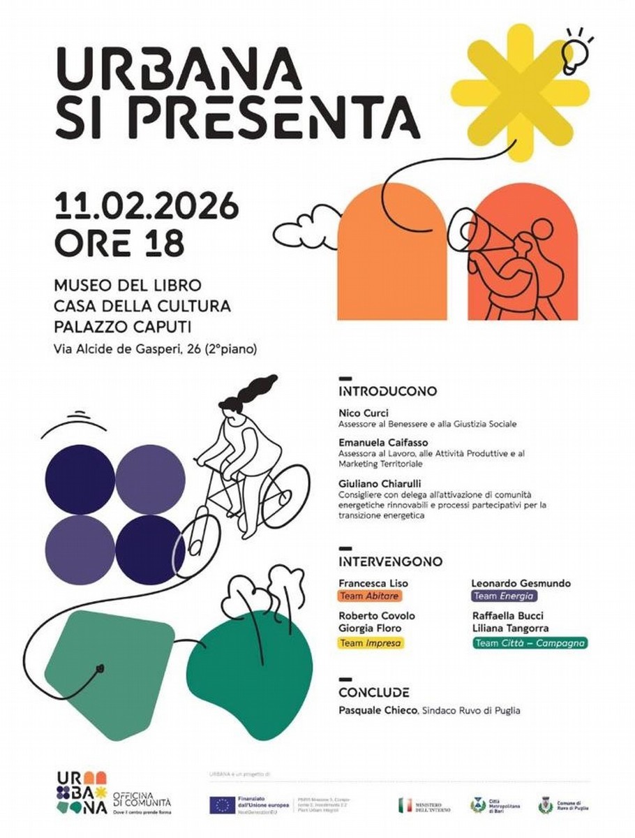 Un'idea semplice ma ingegnosa che spiega bene lo spirito di URBANA, il progetto del Comune di Ruvo di Puglia finanziate dal PNRR nell'ambito del PUI (Piani Urbani Integrati) che riunisce attività immateriali per la promozione della residenzialità, il rilancio del piccolo commercio di prossimità, la creazione di comunità energetiche e un rafforzamento della relazione tra città e campagna.