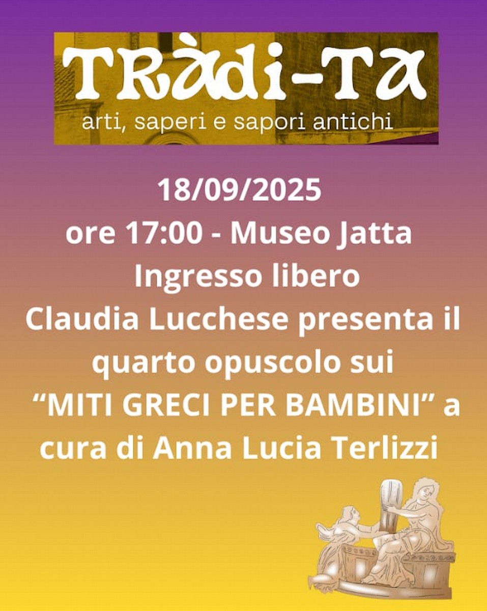 L'incontro sarà condotto dalla Dott.ssa Claudia Lucchese, Direttrice del Museo Nazionale Jatta, che presenterà il quarto opuscolo della collana "Miti Greci per Bambini", curata da Anna Lucia Terlizzi. La pubblicazione propone un viaggio tra eroi, divinità e leggende senza tempo, adattate per essere comprese e apprezzate dai bambini, con un linguaggio semplice e allo stesso tempo affascinante.