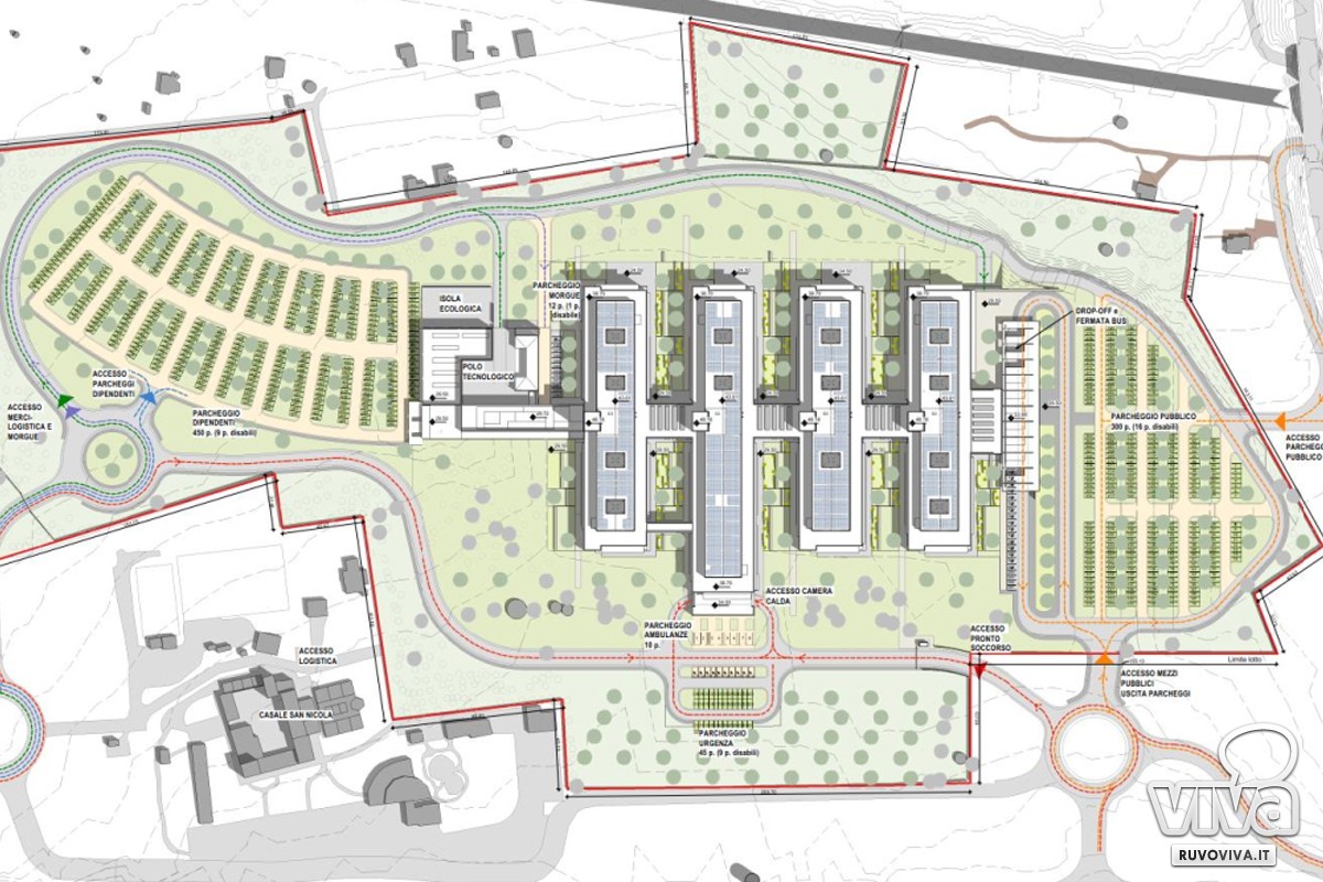"L'area di 17 ettari utilizzata - ha spiegato l'ing. Francesco Ruggiero, in rappresentanza del Raggruppamento temporaneo composto da Manens, Studio Altieri, Pinearq, AGM Project Consulting - servirà un bacino di quasi 250mila abitanti con massima attenzione alle tematiche paesaggistiche ed ambientali. È un DEA di 1° livello da 243 posti letto, pensato attraverso uno studio clinico-gestionale ed un'analisi della rete erogativa. L'obiettivo era l'inserimento del nuovo ospedale nell'attuale offerta sanitaria del territorio servito. Non, quindi, una somma algebrica ma una dotazione di spazi necessari per svolgere al meglio tutte le attività che un moderno ospedale debba oggi offrire. Valore aggiunto è l'ospedale nell'ospedale, cioè la presenza di un luogo che possa fungere per la cura di una eventuale nuova pandemia".